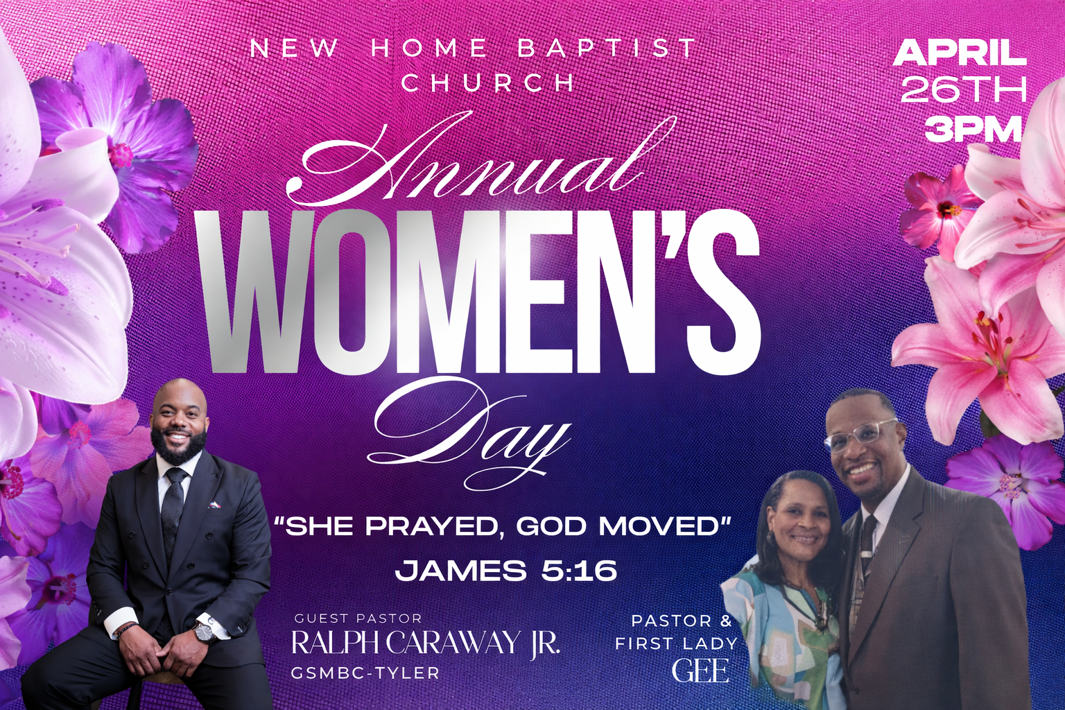 Join us at New Home Baptist Church for our Annual Women’s Day Celebration, a powerful time dedicated to honoring the strength, faith, and impact of women in the body of Christ.