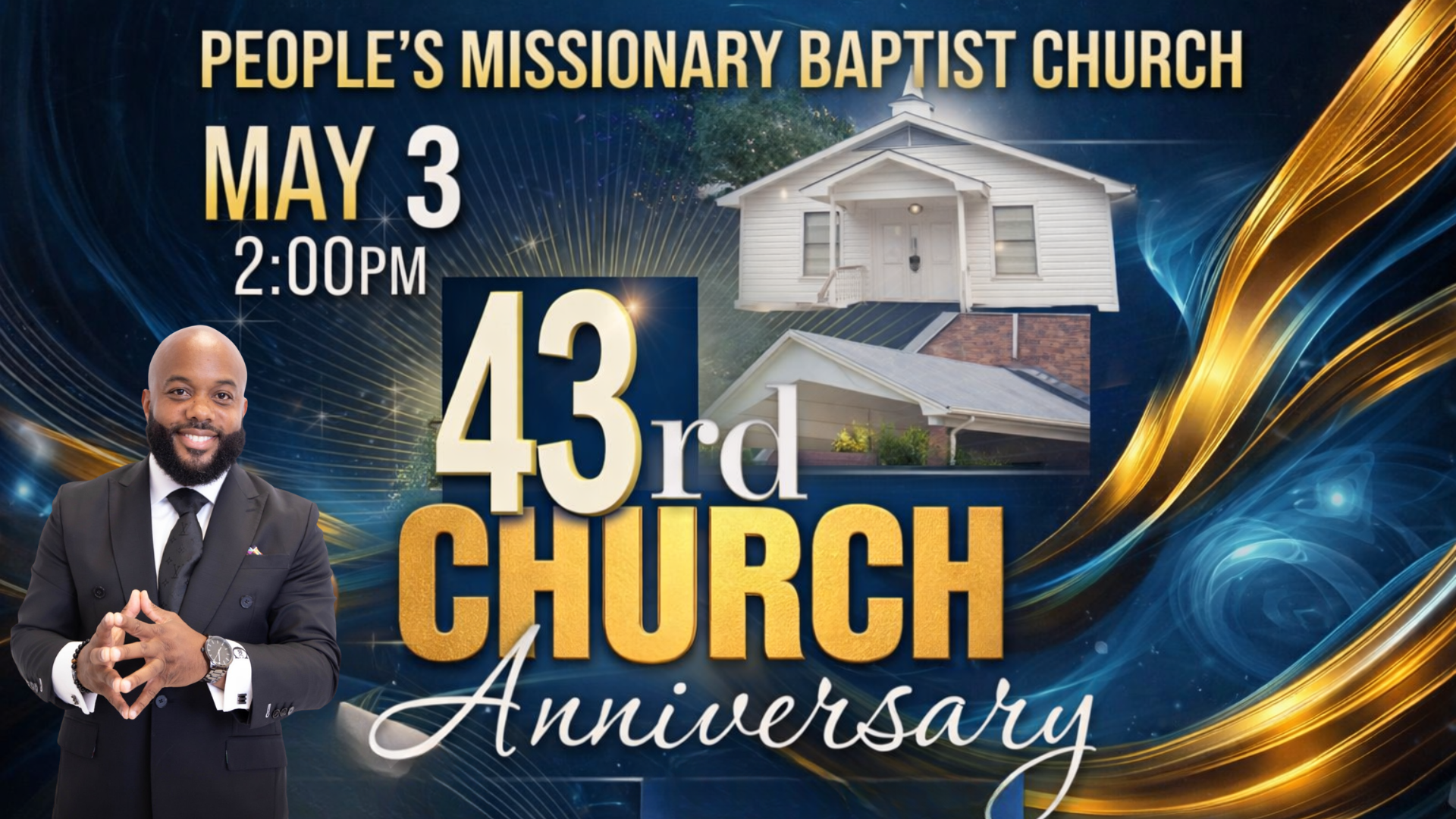 Celebrate with us as People’s Missionary Baptist Church marks an incredible milestone—our 43rd Church Anniversary!